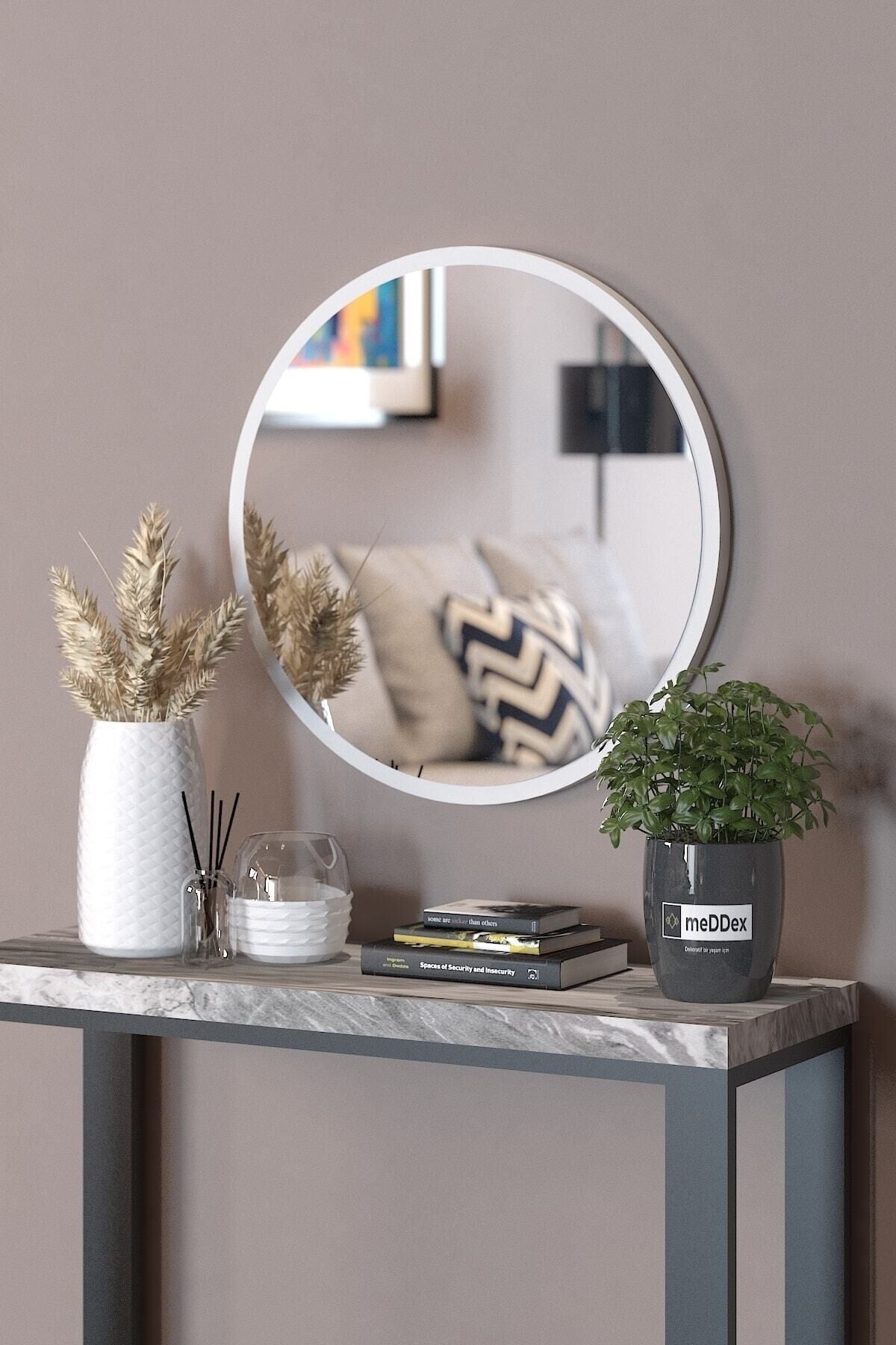 58 Cm Beyaz Dekoratif Yuvarlak Antre Hol Koridor Duvar Salon Mutfak Banyo Wc Ofis Aynası