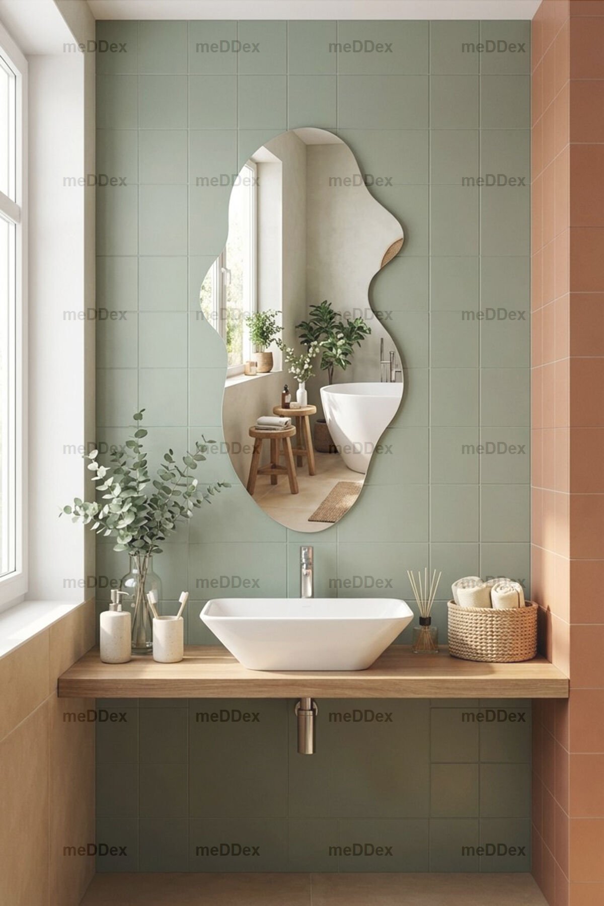Asimetrik Dekoratif Duvar Salon Hol Koridor Banyo Aynası 100x50