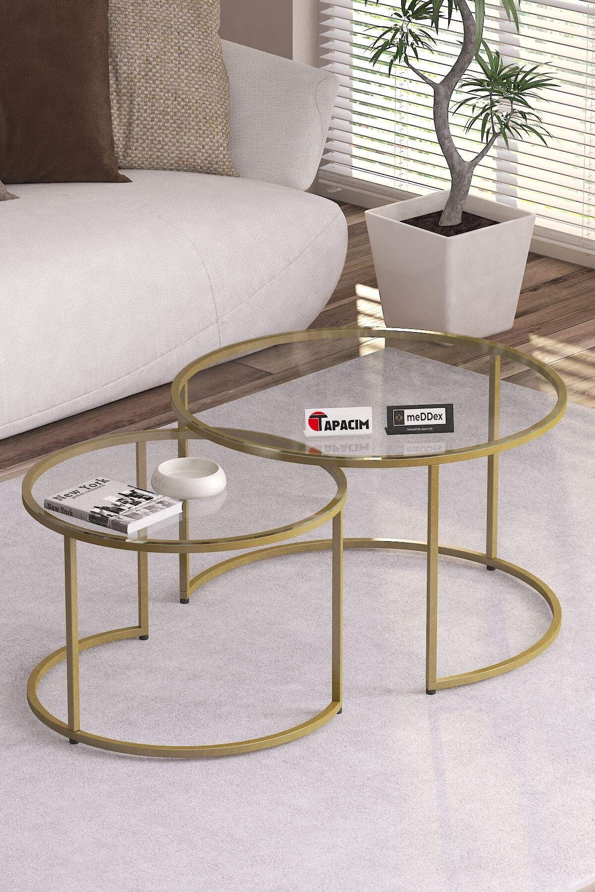 Riga Orta Sehpa 2'Li Şeffaf Cam ( Temperli ) - Gold Metal