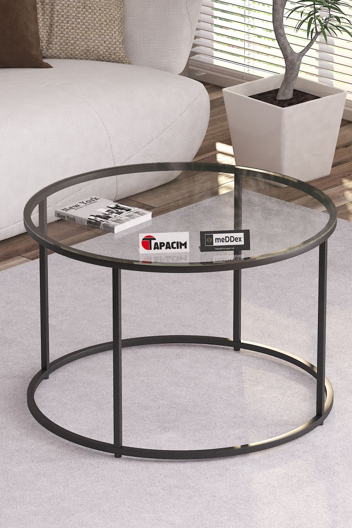 Riga Orta Sehpa 70 Çap Şeffaf Cam ( Temperli )- Siyah Metal