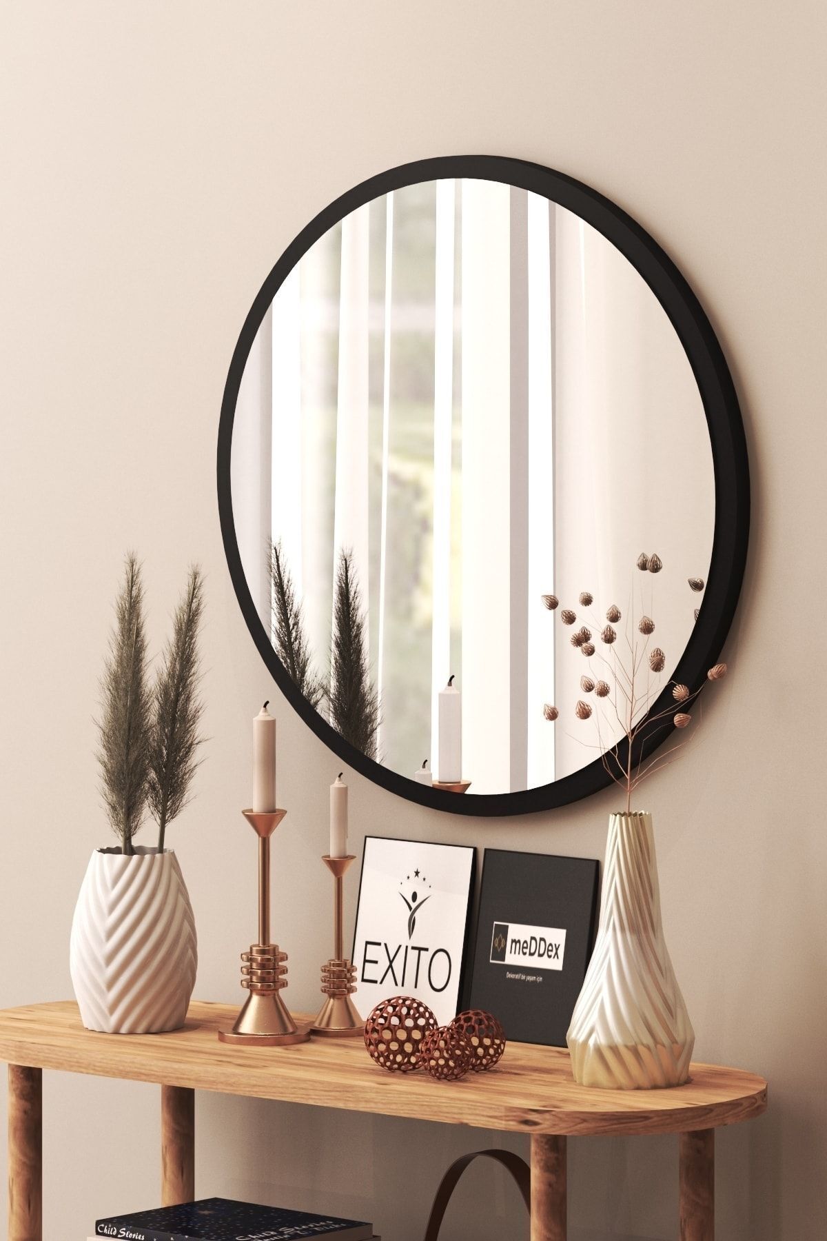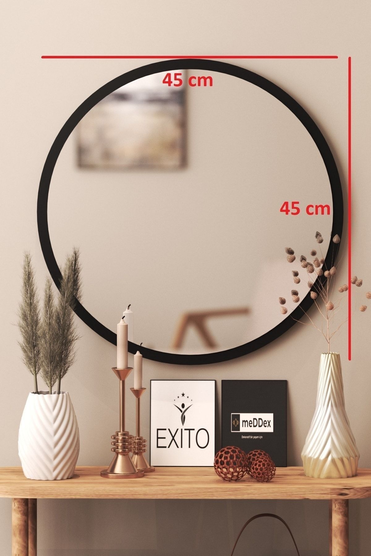 Yuvarlak Ayna 45cm Siyah Dresuar Hol Koridor Duvar Salon Banyo Wc Ofis Çocuk Yatak Odası Boy