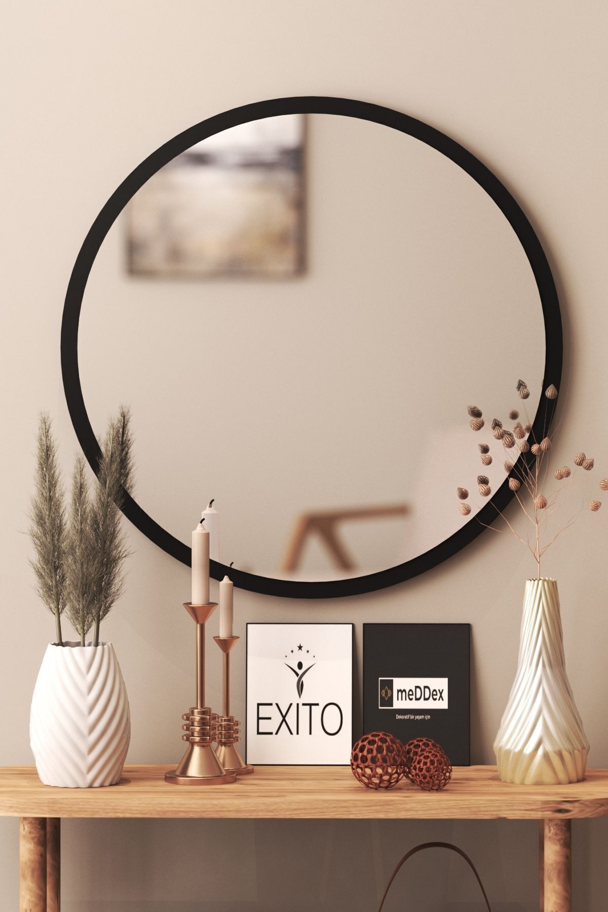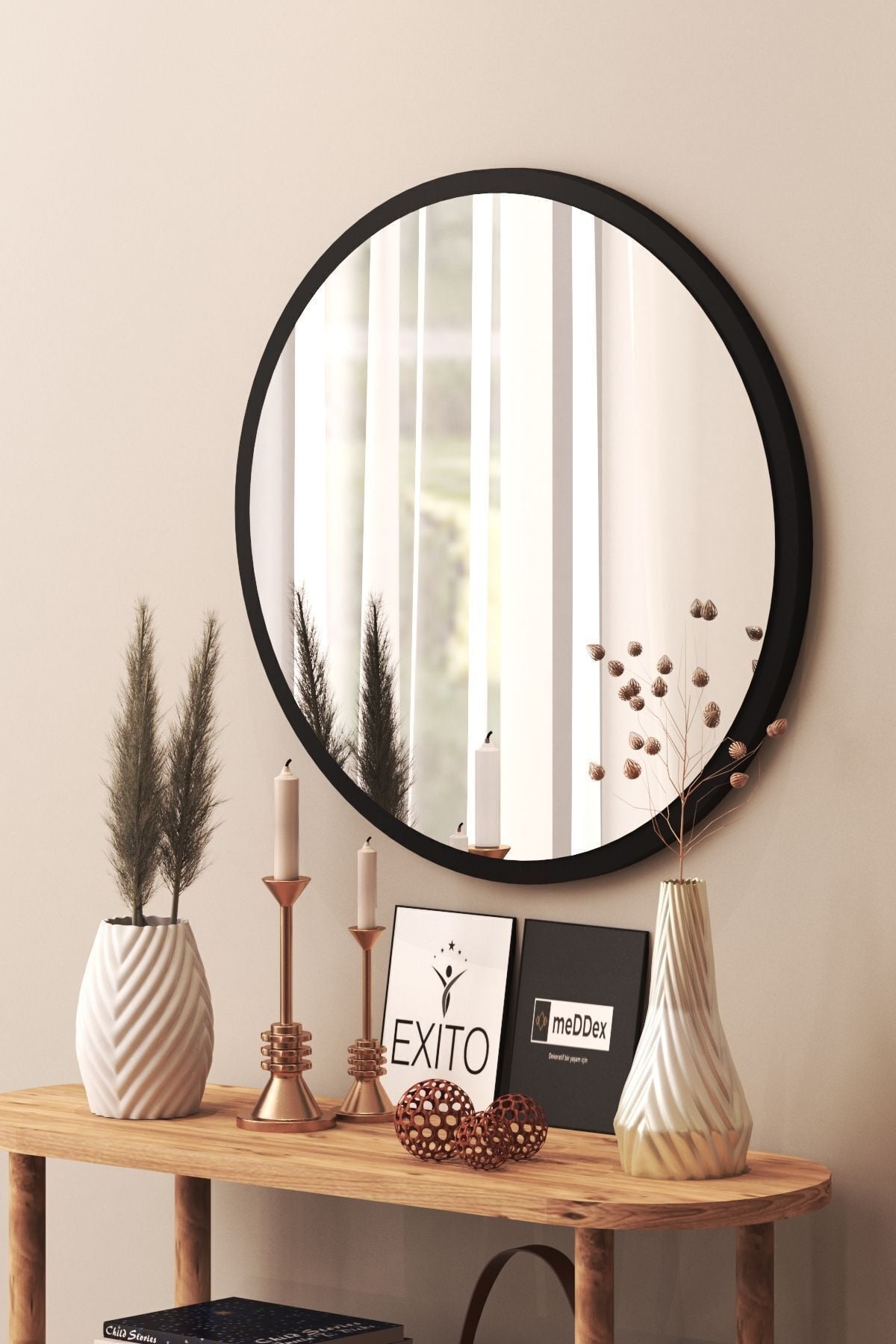 Yuvarlak Ayna 60 Cm Mat Parlak Siyah Dresuar Koridor Duvar Salon Banyo Wc Ofis Çocuk Yatak Odas