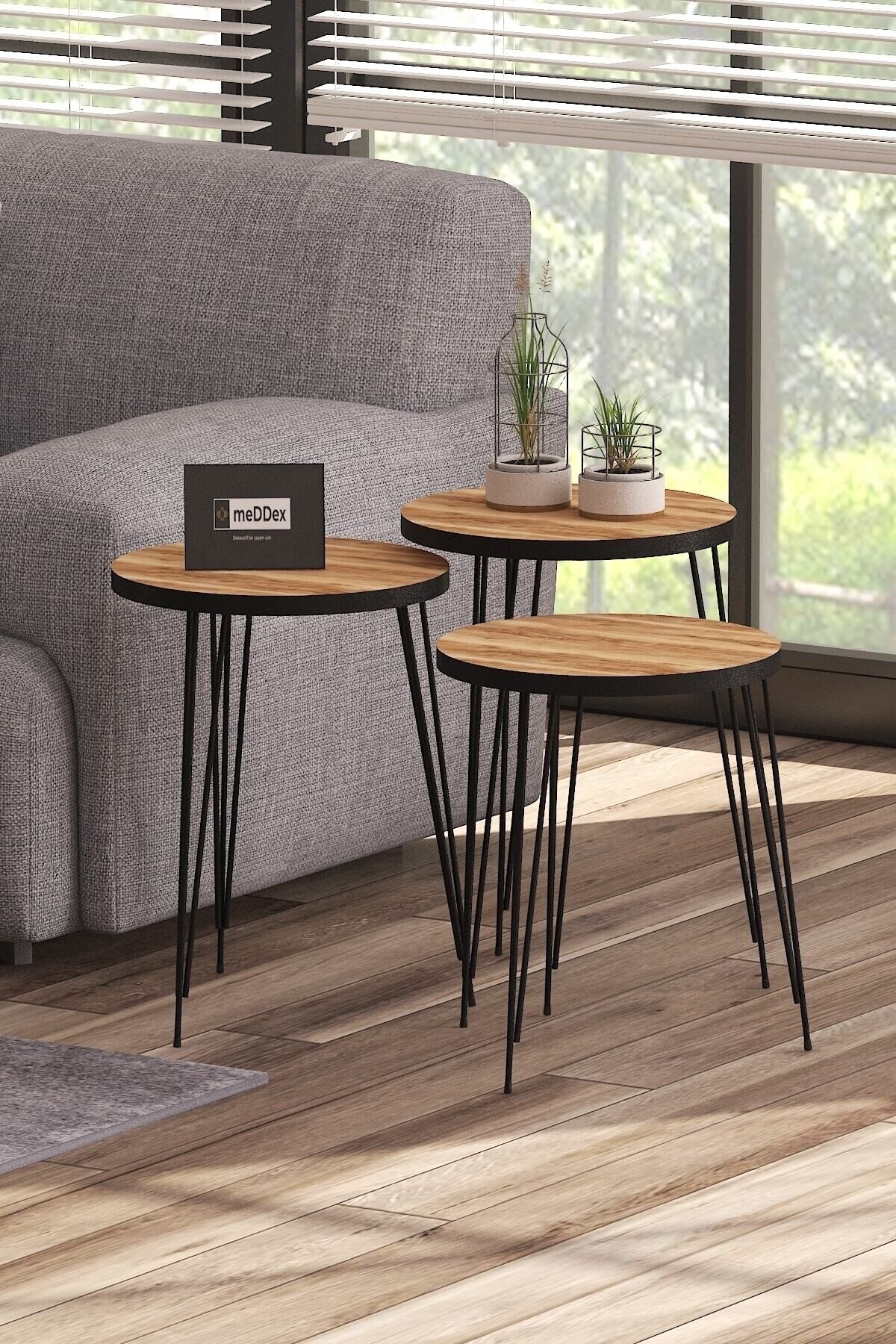 Zigon Sehpa 3'lü Ceviz Siyah